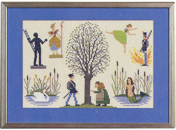 Fyrtøjet - ophæng med broderi designet af Ida Winckler for Haandarbejdets Fremme. Ophænget  broderes på 10-trådt bleget hørlærred med Dansk Blomstergarn. Størrelse 21 x 30 cm.