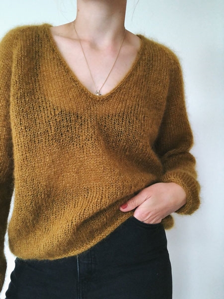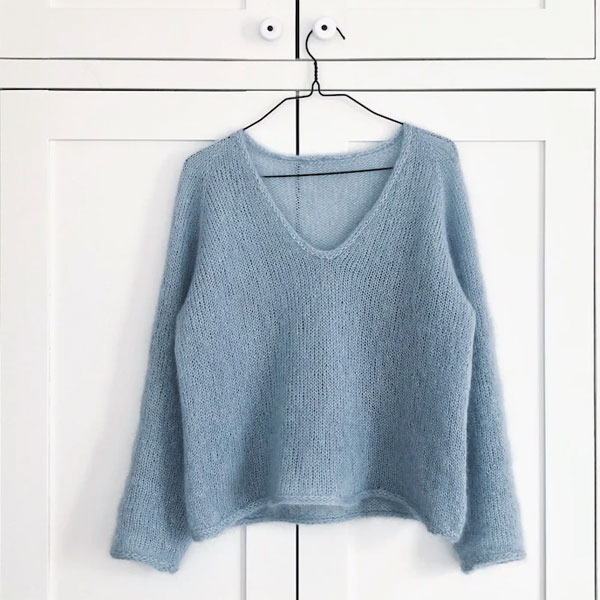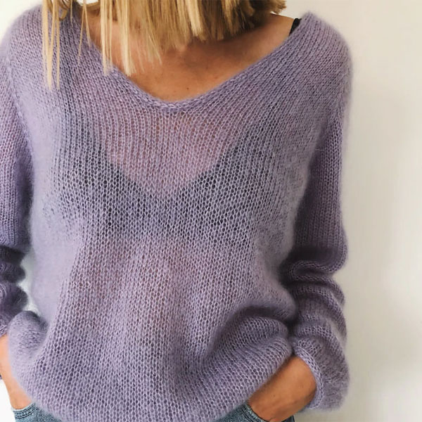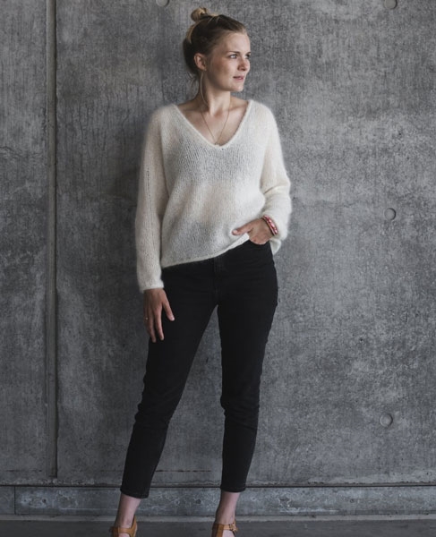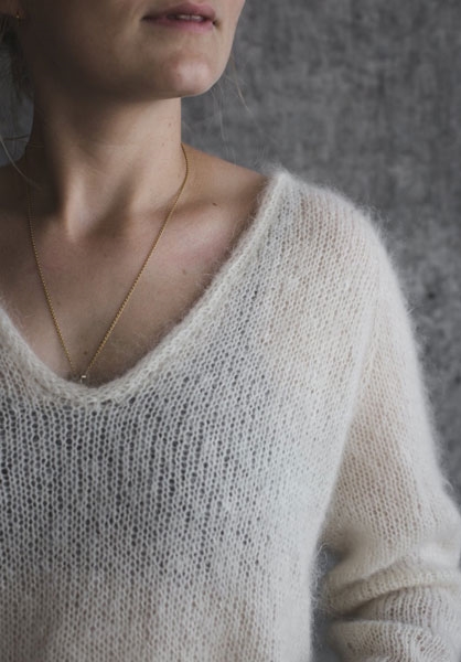 Kumulus -  opskrift og garn til flot bluse fra Petiteknit som strikkes i 2 tråde Tilia garn (25 g ngl. mohair og mulberrysilke) Blusen bliver let og luftig som en sky i Tilia garn - heraf navnet Kumulus.
