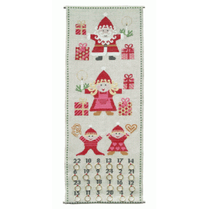 Vintersportsnisser - herlig julekalender med broderi designet af Pelse Asboe for Fru zippe. Kalenderen broderes 8 trådet naturfarvet hørlærred med Flora Cotton. Størrelse 23 x 69 cm.