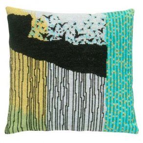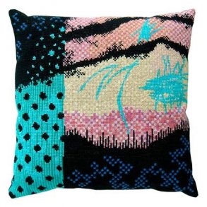 Landskab med plovfurer - stramajpude med broderi designet af Birthe Larsen. Puden broderes med hørgarn. Størrelse ca. 40 x 40 cm.