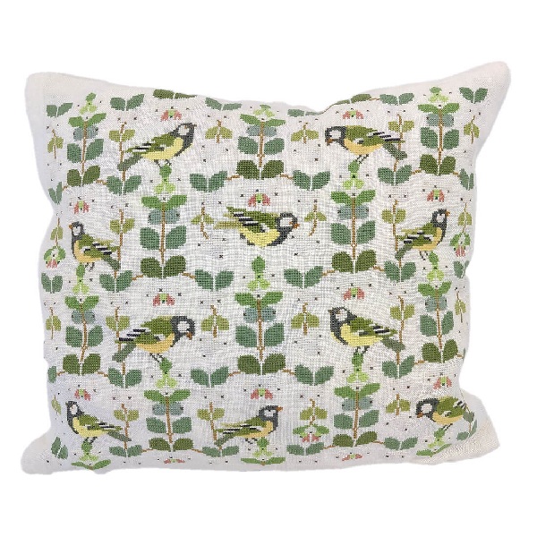 Musvit - pude med broderi designet af Christiane Hæk for Haandarbejdets Fremme. Puden broderes på 12-trådet hørlærred med Dansk Blomstergarn. Størrelse 34 x 49 cm. Broderipakningen indeholder broderistof (også til bagbeklædening) broderigarn, mønster og nål.