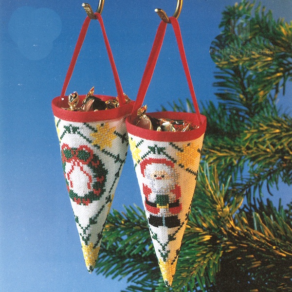 Julemand og julekrans - kræmmerhuse med med broderi som broderes på 10-trådet hørlærred med DMC moulinè garn (amagergarn). Størrelse ca. 10 x 13 cm. Broderipakningen indeholder broderimaterialer og  mønstre til 2 kræmmerhuse til motiverne som vist på billede. Vejledning, kantbånd, vliseline og nål medfølger også.