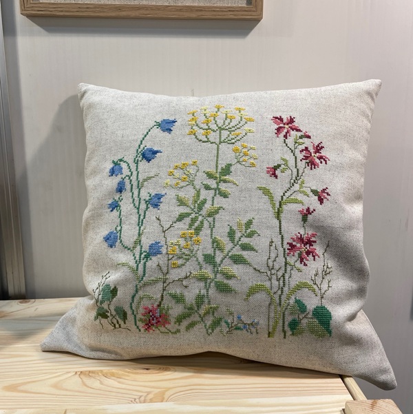 Grøftekantsblomster - pude med broderi