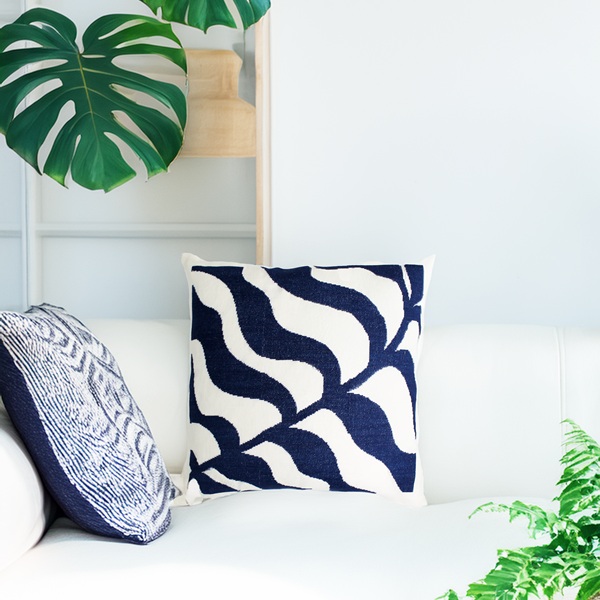 Seaweed - pude med broderi fra Oehlenschläger. Puden broderes på 10-trådet hørlærred eller hvid aida 5,4. med DMC moulinègarn (amagergarn). Størrelse ca. 50 x 50 cm. Broderipakningen indeholder broderistof (også til bagbeklædning), broderigarn, mønster og nål.
